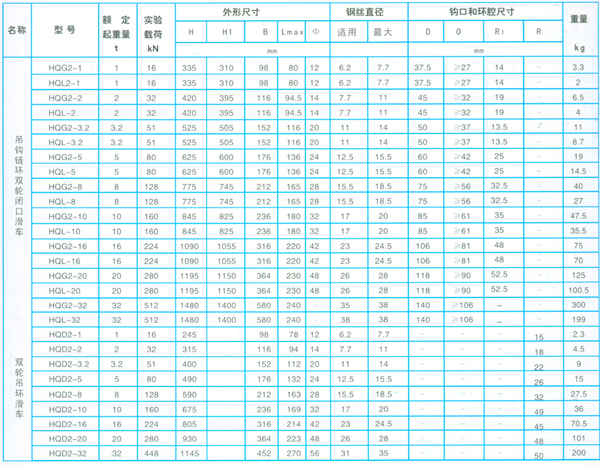 產品規格從0.03-320噸,輪系從單輪至十輪,吊具有吊鉤,鏈環,吊環,吊梁四種,可供用戶選擇。