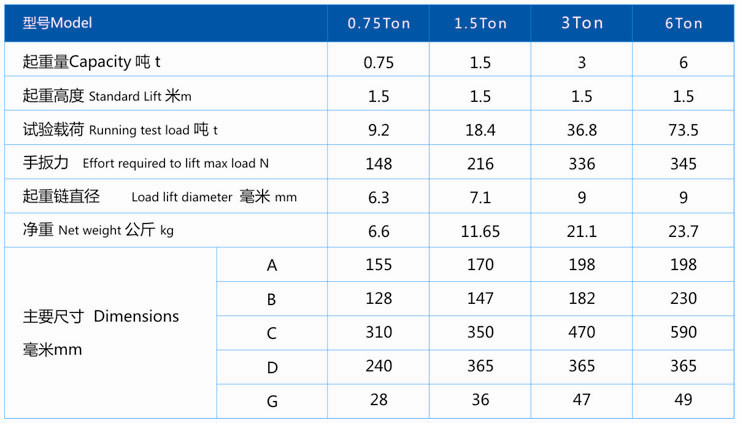 鎂鋁合金鏈條手扳葫蘆1.5T